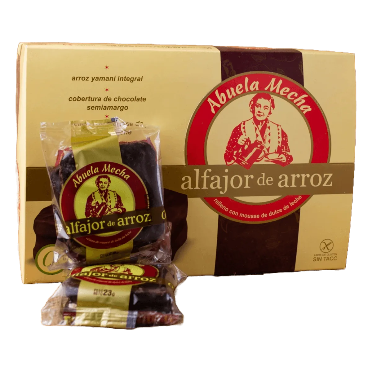 ABUELA MECHA-ALFAJOR ARROZ CHOCOLATE NEGRO X12 U X23 G