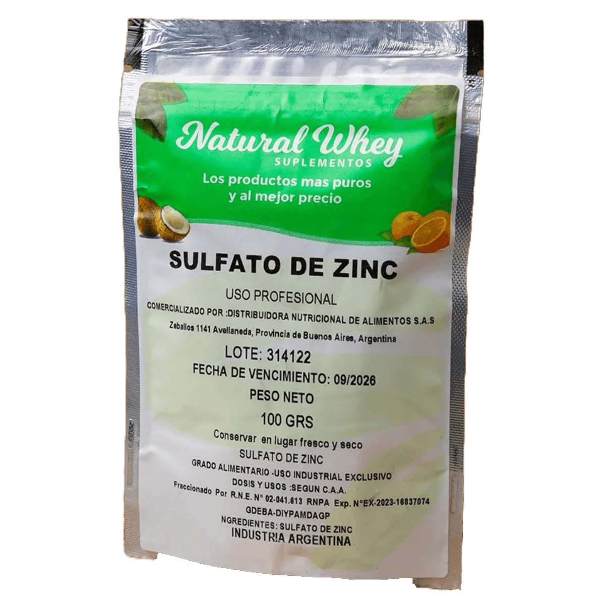 NATURAL WHEY – SULFATO DE ZINC GRADO ALIMENTICIO X100 G
