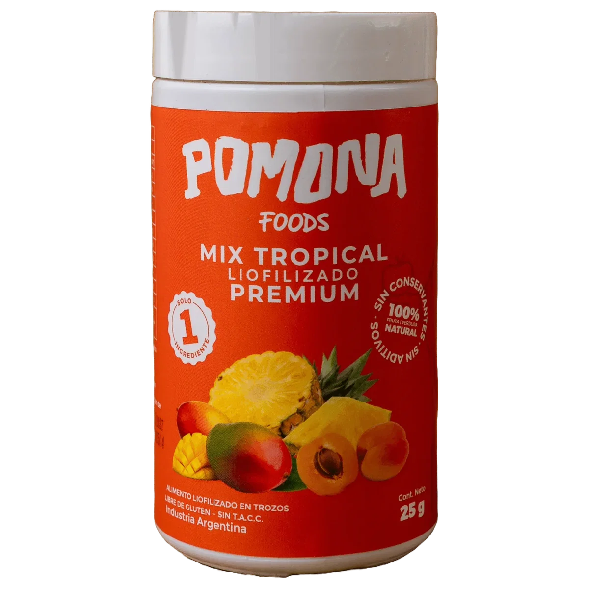 Disfruta de nuestro mix tropical (ananá, durazno y mango) liofilizados 100% naturales y saludables. Para lograrlo los duraznos, mangos y ananá se limpian y liofilizan, lo que elimina su contenido de agua y transforma en un alimento crujiente que lo hace absolutamente irresistible a cualquier paladar. Este producto combina las vitaminas, la fibra y demás propiedades de la fruta fresca con el crujido de un chip y la dulzura de un caramelo.
