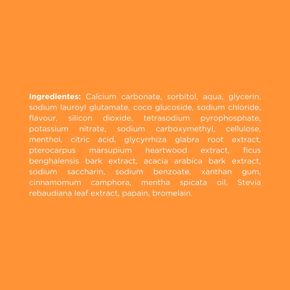 Menta: Proporciona una frescura duradera al aliento. Combate las bacterias responsables del mal aliento y la caries.