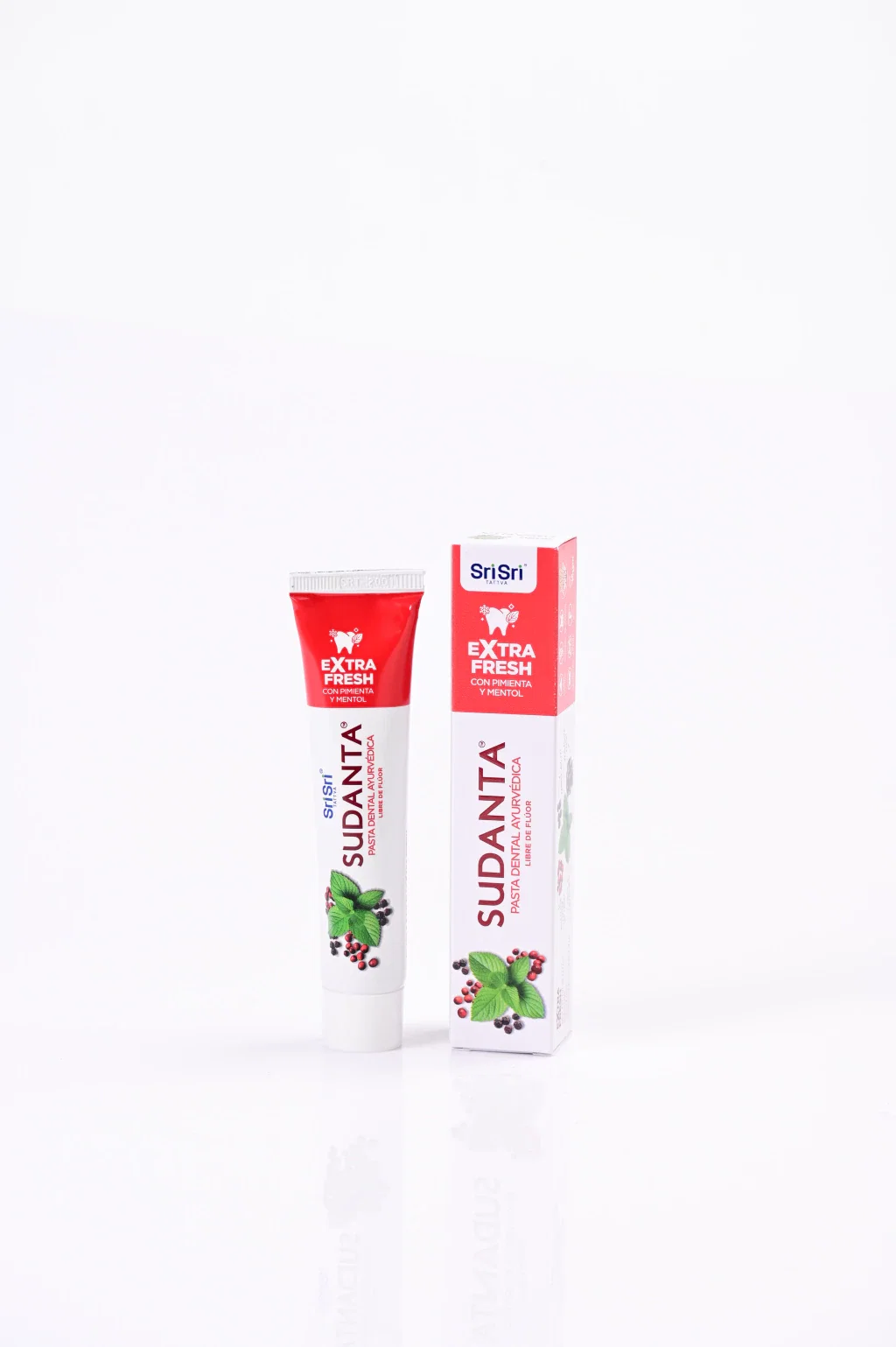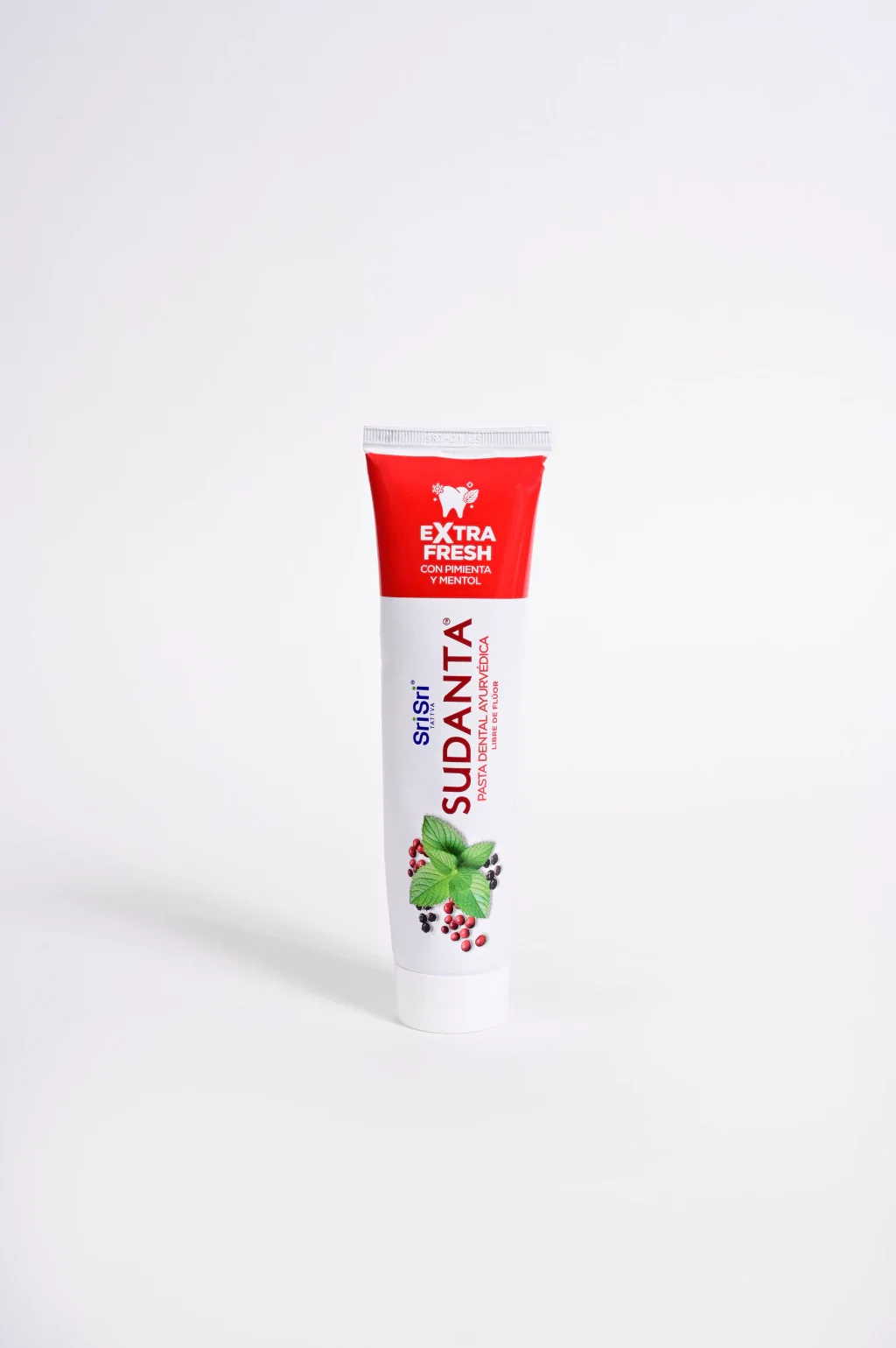 Sentí una explosión de frescura con la nueva pasta dental Sudanta. Formulada con mentol a partir de la hoja de menta piperita y un mix de pimientas de la India que ayudarán a mantener los dientes fuertes y sanos.