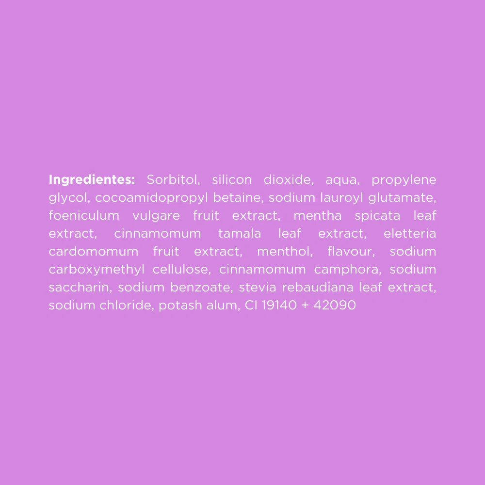 Menta: contiene mentol, que aporta una sensación refrescante en el aliento de forma prolongada. Calma la inflamación, por lo que es útil en el alivio de encías inflamadas y dolorosas.